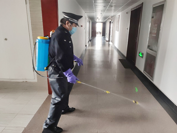公司為在崗員工發放了口罩、噴壺、消毒酒精等防護用品,每日對各工作場所、班車、車庫、電梯、宿舍等進行定點消毒。