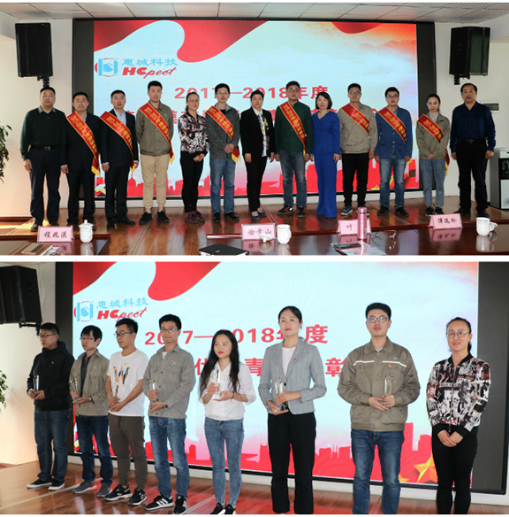 公司2017-2018勞動模范和優(yōu)秀青年上臺領獎