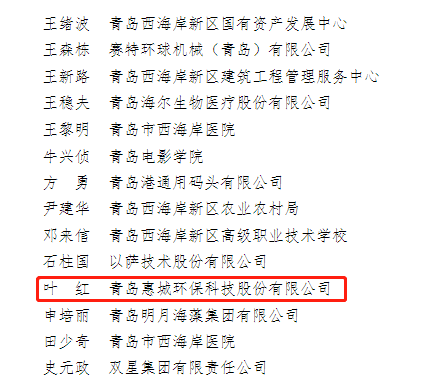 近日,2021年青島西海岸新區拔尖人才和優秀青年人才名單公布,我公司常務副總經理葉紅被表彰授予“青島西海岸新區拔尖人才”稱號,工程技術研究中心副主任呂靈靈、研發部部長高明軍被表彰授予“青島西海岸新區優秀青年人才”稱號。