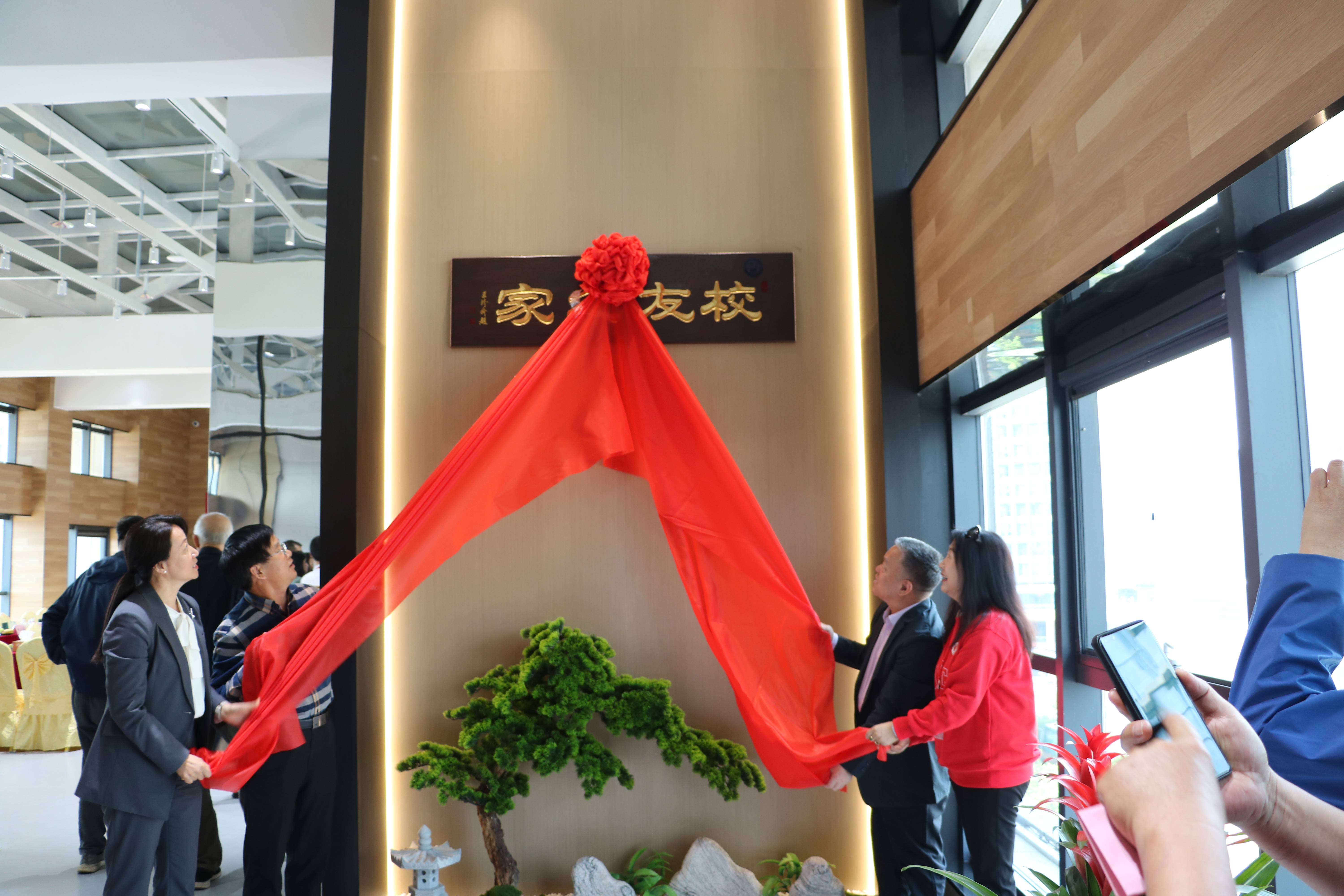 交流會后,校友總會會長查明、校長助理兼校友總會秘書長王效美、惠城環(huán)保創(chuàng)始人張新功、青島校友會副會長兼秘書長唐作慧一道為“校友之家”揭牌。
