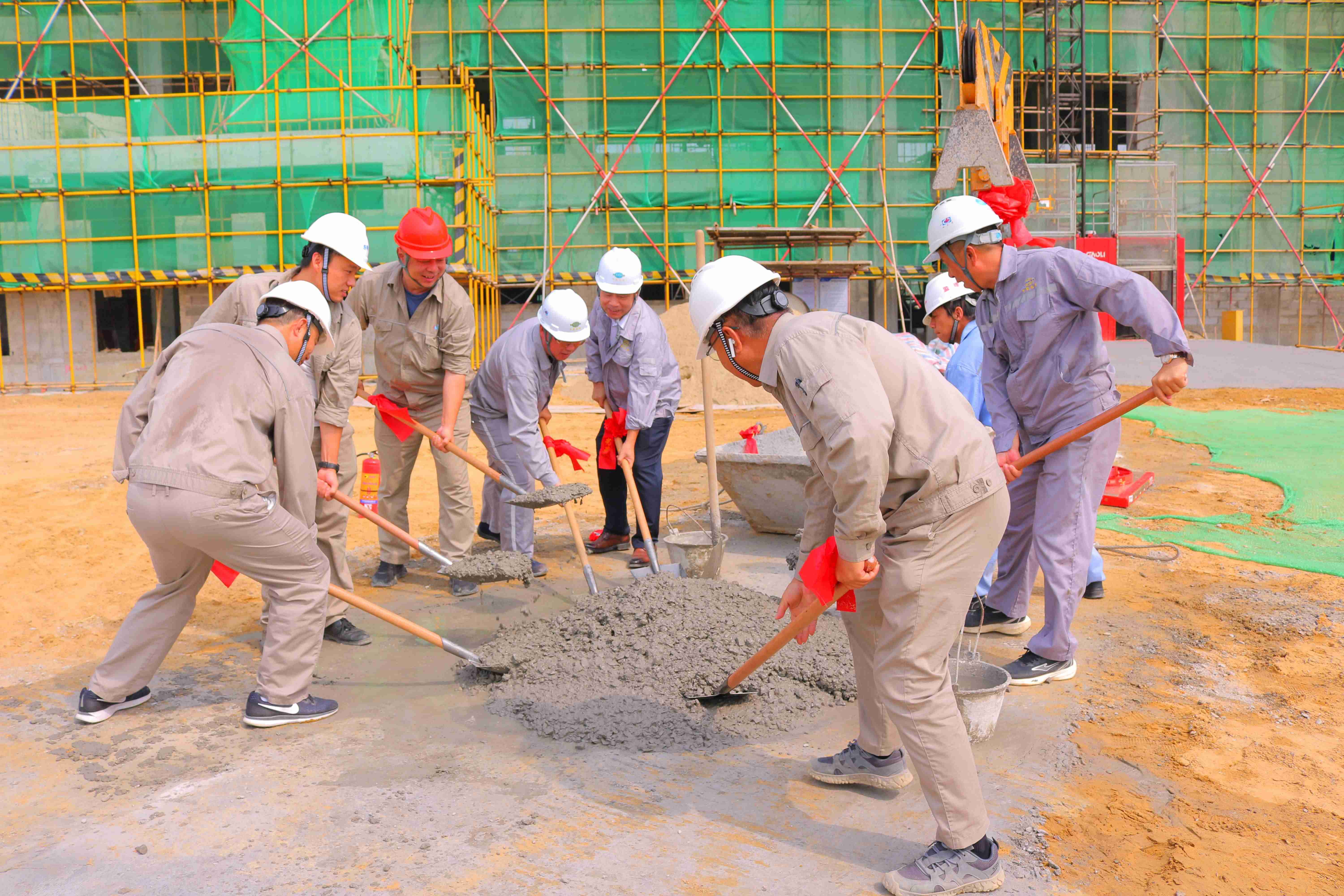 時風澍雨釀花天,吉日良辰喜報連。8月8日,隨著最后一段頂板混凝土完成澆筑,20萬噸/年混合廢塑料資源化綜合利用示范性項目辦公樓結構喜封金頂,標志著項目階段性節點順利完成,為年底建成投產奠定了堅實基礎。惠城環保集團子公司廣東東粵化學科技有限公司總經理李恩泉、中國化學工程第四建設有限公司華南分公司黨委書記尋飛躍、廣州石化建設監理有限公司總監理工程師盛筠等領導出席封頂儀式。
